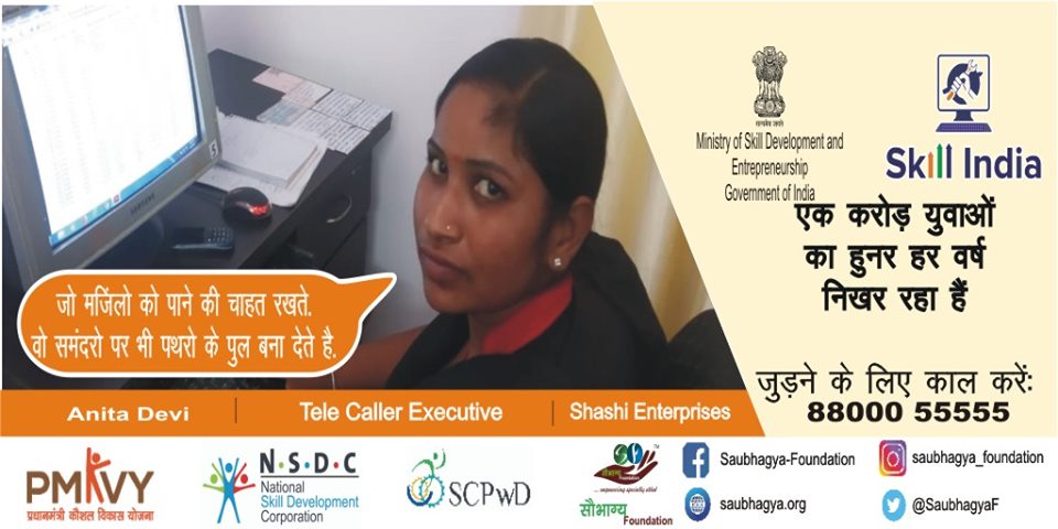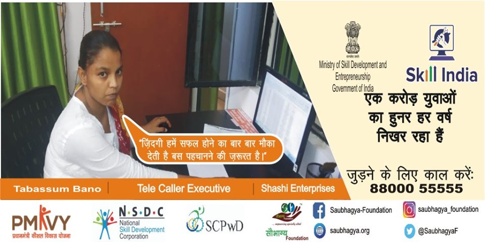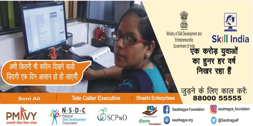 My name is Pinki. I am from Hardoi, I have a disability of 45% from the one leg. To prove my abilities I joined Saubhagya Foundation and take training under PMKVY for Customer Care Executive and now I’m working for Saubhagya Foundation as Admin Executive. Today I am very proud and happy.