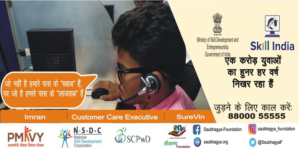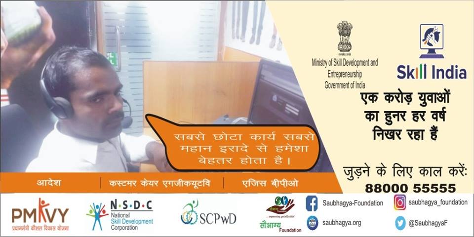 My name is Desh Deepak I live in Sitapur. I believe that “it is your decision and not condition which determines what you are”. However, I have always remained positive and motivated. I have 80% disability in my limbs. My father is a farmer, so it was difficult for him to bear the expense of the whole family. Then to support my family, I took training from Saubhagya Foundation under PMKVY for Customer Care Executive and currently I have been placed in SUREVIN as Customer Care Executive. It is indeed one of the happiest days of my life.