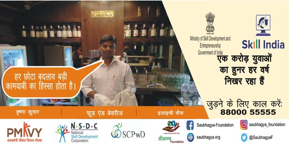 मेरा नाम कृष्णा कुमार है मैं सुन और बोल नहीं सकता स्किल इंडिया से मैने फ़ूड एंड बेवरीज का कोर्स किया जिस के करने के तुरंत बाद मेरे को इलाइची कैफ़े में जॉब मिल गई है आज मेरी दिव्यांगता ही मेरी आने वाली सफलता की सीढ़ी बनगई है