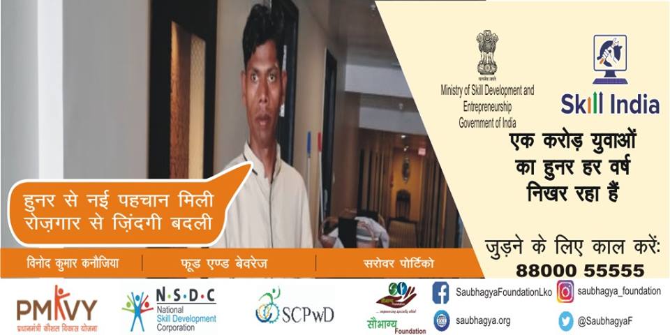 मेरा नाम विनोद कुमार कनौजिया है, मैं लखनऊ का निवासी हूँ, मैं सुन और बोल नहीं सकता पर Skill India ने मेरे दिव्यांगता को एक नयी रहा दी है आज मेरे को सरोवर पोर्टिको होटल में अच्छी जॉब मिल गयी है