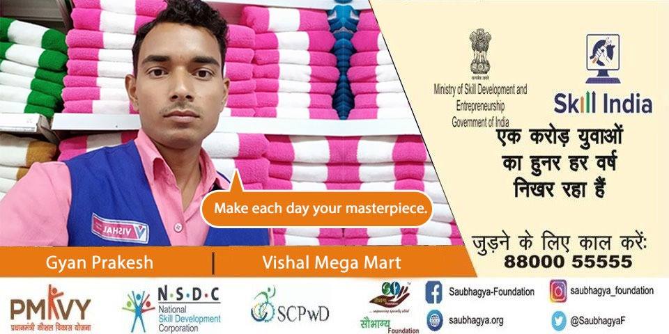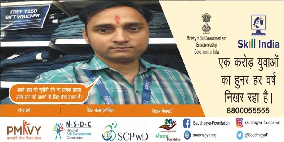 ज़िंदगी आगे बढ़ने का नाम है, रुकने का नही..!” मेरा नाम गौरव वर्मा है, मैं कानपुर का निवासी हूँ, मैं सुन अथवा बोल नहीं सकता, Skill India के अंतर्गत्त मैने लखनऊ से कोर्स करके, मैने अपनें ही शहर कानपुर में विशाल मेगामार्ट नौकरी हासिंल की जिससें आज मैं बहुत ही प्रसन्न हूँ |