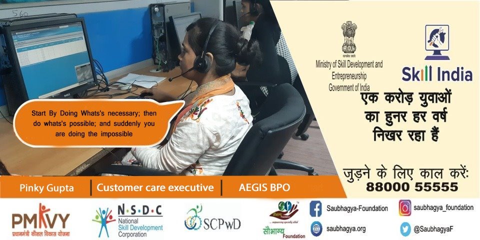 My name is Pinky Gupta, I am from Lucknow. I have a disability of 65% from my lower limbs. I am a single parent-child. I have done Customer Care Executive course from Saubhagya Foundation and after immediately completing the course I have been placed with @AegisBPO. Today I am feeling very happy to reduce the hardship of my mother by becoming her supporting pillar.