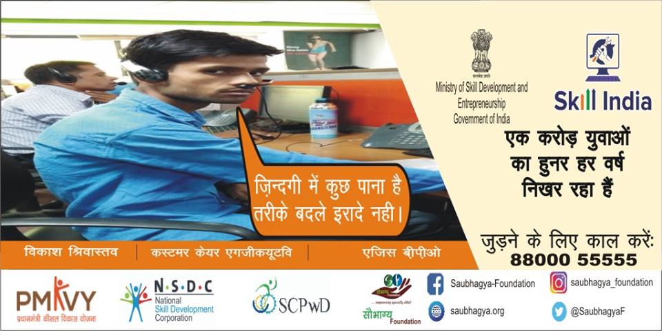 मेरा नाम विकास श्रीवास्तव है, मैं स्पाइनल कॉर्ड से अक्षम हूँ, skill India के अंतर्गत ट्रेनिंग करके मुझे जीवन में नई राह मिली है, ट्रैनिग समाप्ति के ठीक दूसरे ही दिन Aegis BPO में कस्टमर केयर एग्जीक्यूटिव के पद पे जॉब मिल गई.
