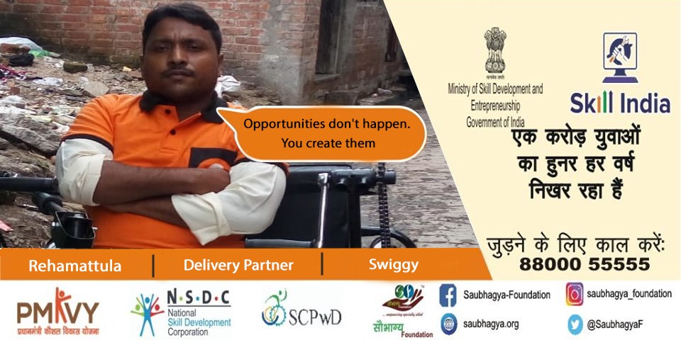 My name is Sunil Verma. I have 60% disability from 1 leg. I am from Kaisegranj, Bahraich, U.P. There are 9 members in our family. Then to support my family, I took training from Saubhagya Foundation under Skill India Mission and currently I have been placed in Swiggy as Delivery Partners. It is indeed one of the happiest days of my life.