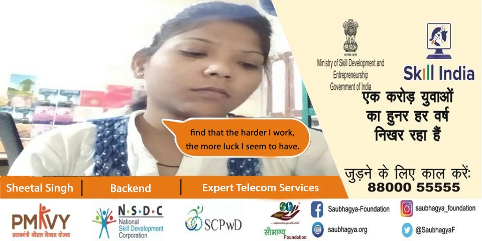 My Name is Sheetal Singh. I have 70% orthopedic disability. My father works in a private job and my mother is a housewife. We are a family 5, living in Lakhimpur. I have done the customer care executive course under Skill India Mission, from Saubhagya Foundation Lucknow and I got placed with Expert Telecom Services as Backend executive. Skill India Mission plays a role of game changer in my life as I was given a direction and courage to live a life full of happiness, success and achievements.