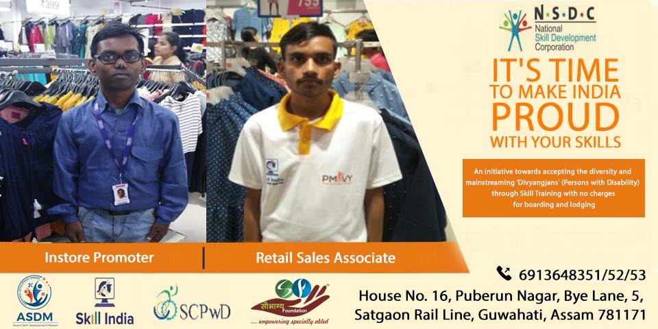 With a focus on giving a platform to Divyanjans (Persons with Disability) to be part of main stream, we have started a campaign under Assam Skill Development Mission. We support the individuals by imparting the training, wherein the charges for training and lodging are borne by the Government. We encourage the Divyanjans to gain their confidence and earn their livelihood without compromising on their self respect.